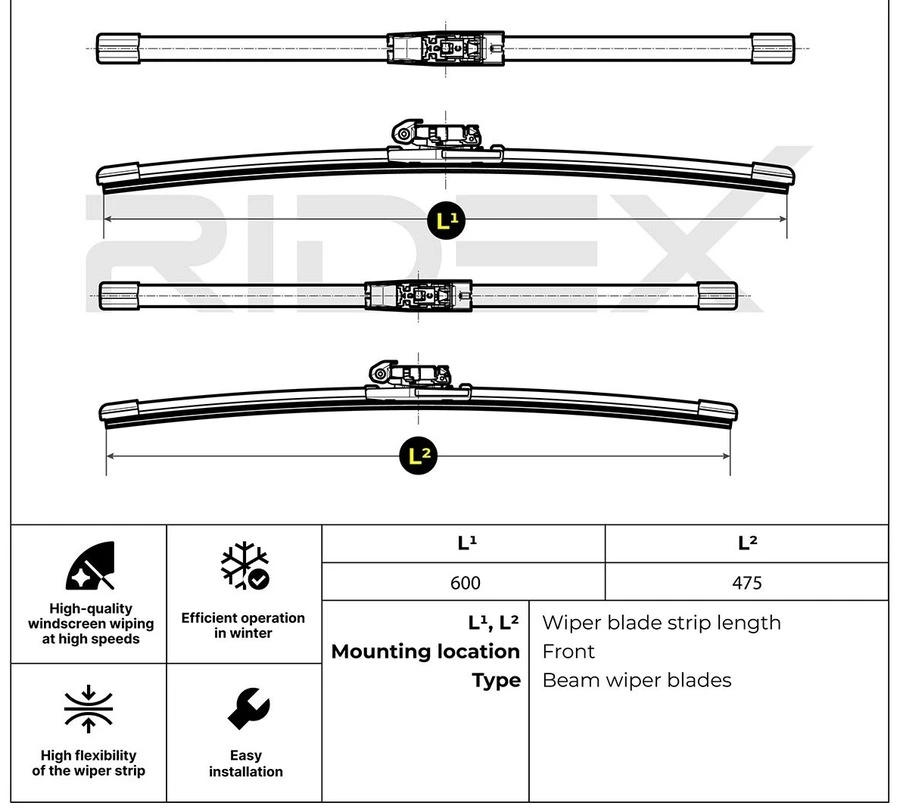 • Wiper blade type: Beam